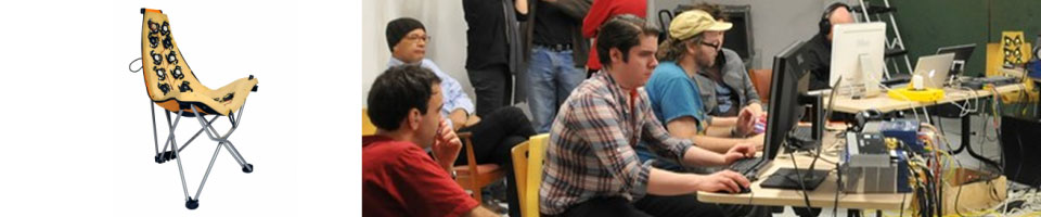 In the Emoti-Chair Workshop David Bobier introduced participants to a unique form of compositional creation. The Emoti-Chair, developed by Bobier in collaboration with Ryerson's Centre for Learning Technologies led by Deb Fels, allows users to feel sounds through vibrations in the back and seat of the chair. Originally intended to translate music for deaf users, the chair offers an alternative form of creative expression that is parallel to, but different from, sound. Participants were shown how to compose artworks for the chair using specially adapted computer software. David presented an Emoti-Chair Demonstration at the Gallery during the exibition opening in Sept.